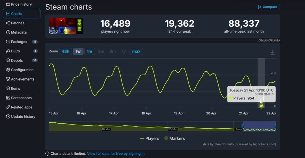 Actualmente, el título se mueve en un rango aproximado de entre 900 y 16,000 jugadores, reflejando una pérdida constante de interés en muy poco tiempo, una caída así no es normal y mucho menos para un juego de este calibre.