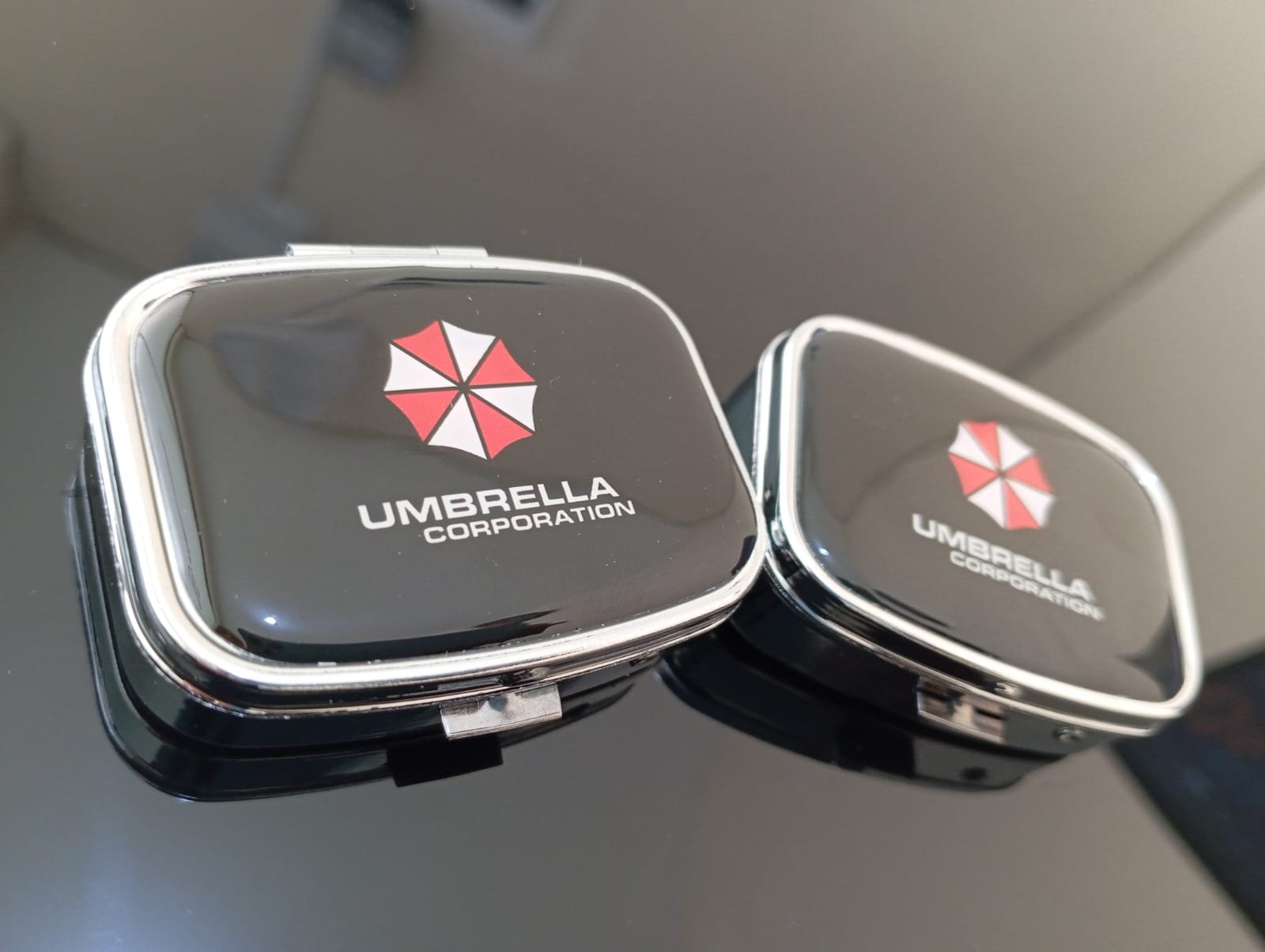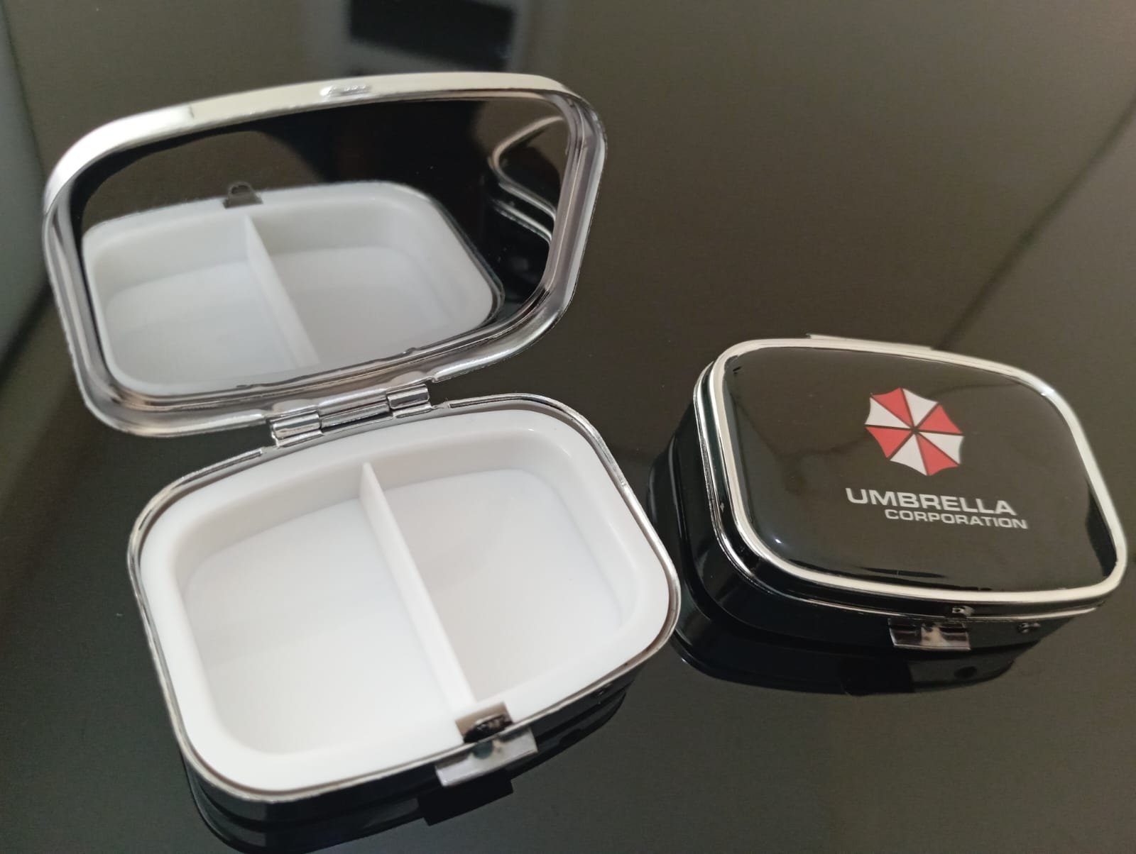 Cajita pequeña para llevar pastillas de algún tratamiento, dulces, caramelos, entre otros que el usuario vea por conveniente, ideal para fans de la mítica saga de videojuegos Resident Evil